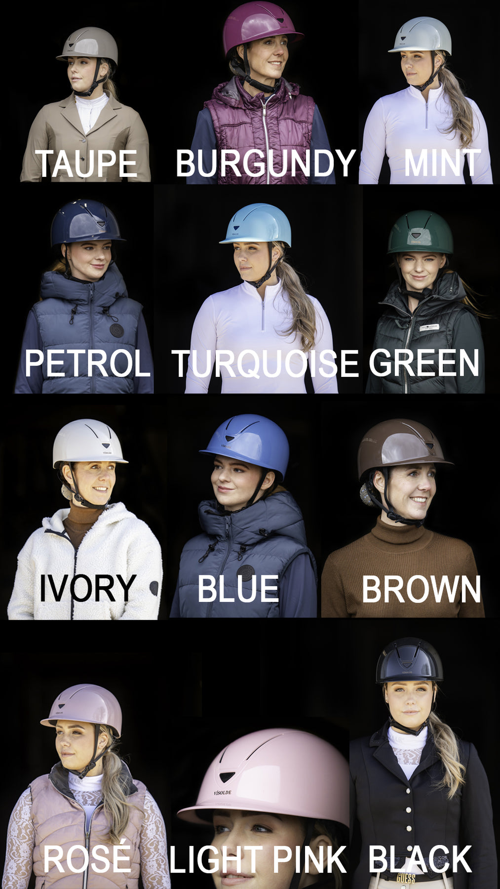 - Kies hieronder jouw paardrijhelm kleur (12 kleuren) en paardrijhelm maat.